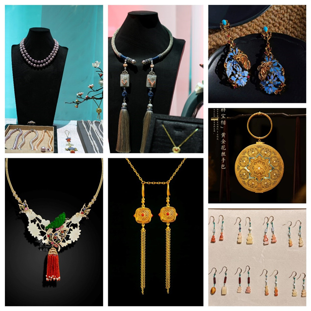 翠绕珠围,谱写珠宝财产传承立异的时代篇章。金银交错间,中国工艺丹青妙手王鹏以保守雕蜡、锻制、镶嵌工艺将保守美学的神韵无限;海派玉雕名家孙广清以匠心设想取细腻刀工再现天然灵韵;绒花非遗传承人蔡志伟带来绒花回复复兴做品,共享“头戴绒花,富贵”的夸姣寄意;将皇家婚庆元素取葫芦制型立异融合,菜百首饰以古法花丝工艺淬炼“福禄双全”吉利寄意;七南借《流金穗月》项扮演绎盘编身手取天圆处所哲思;爱迪生珍珠注释刚柔并济美学;工美立异融合燕京八绝身手,带来了蝶舞花间的宫扇手包;梦金园将非遗花丝工艺取现代设想立异融合,彰显文化传承;以“古物新镶”为,植福缘将百年非遗工艺取现代镶嵌身手立异融合;焕鸾珠宝借孔雀羽取欧泊再现非遗点翠幻景,让千年身手焕发觉代诗意;秋砚书房则沉启印章适用美学,充实注释了“方寸之间,自有六合”的东方哲思。