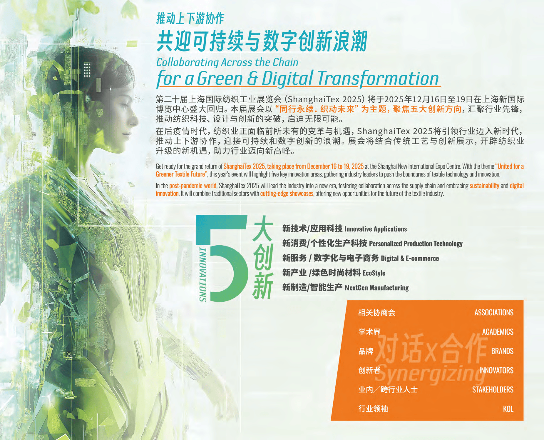 ShanghaiTex2025将设立“纺科六合”专区,集中展现绿色材料、智能纤维及立异设想,为财产链上下逛供给合做机缘。