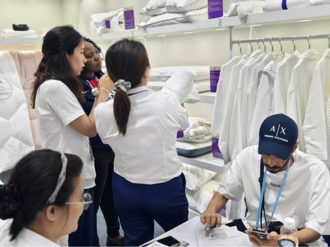 正在全球财产链协同成长的海潮下,陕西雅兰纺织集团充实借帮广交会这一窗口,开展首日,参展团队取来自欧洲、东南亚、中东、日本等共9家采购商进行深度洽商,以精准专业的产物搭配方案获得商客高度承认,两边告竣初步合做意向,进一步拓宽了产物的国际市场邦畿,向着全球化成长方针迈出一步。更是集团持久深耕行业堆集的品牌势能迸发。我们深知,正在全球财产链深度调整的当下,唯有产物差同化、供应火速化、办事本土化,才能正在国际合作中占领自动。将来,我们将继续加快产物研发取国际尺度接轨,让‘中国智制’的匠心工艺通过陕西雅兰寝饰品牌,更高效地触达全球消费者”,陕西雅兰纺织集团副总裁陈睿暗示。
