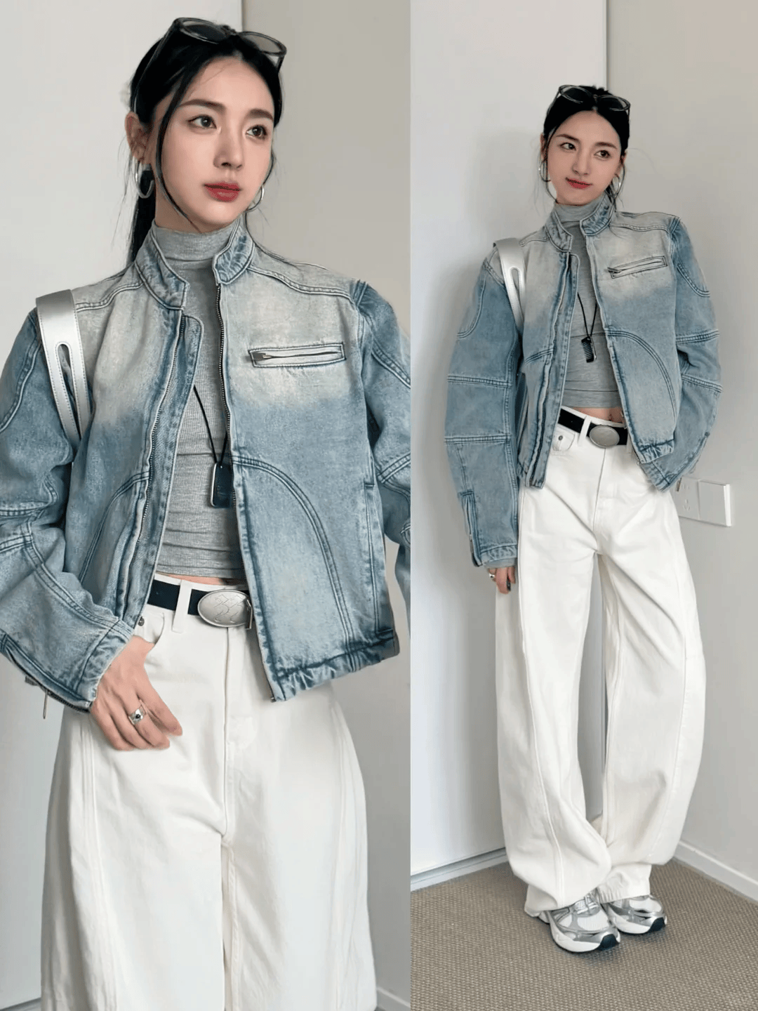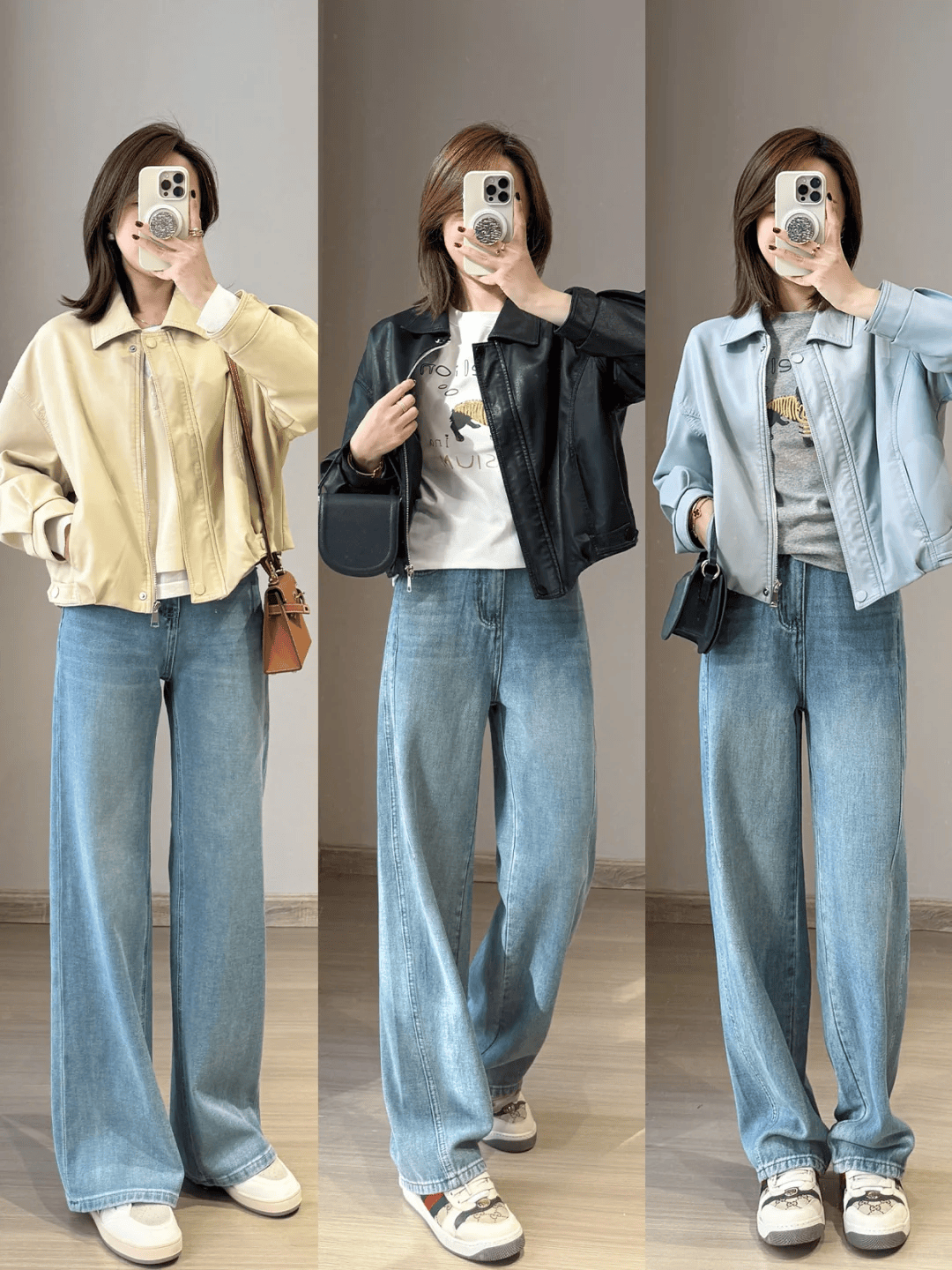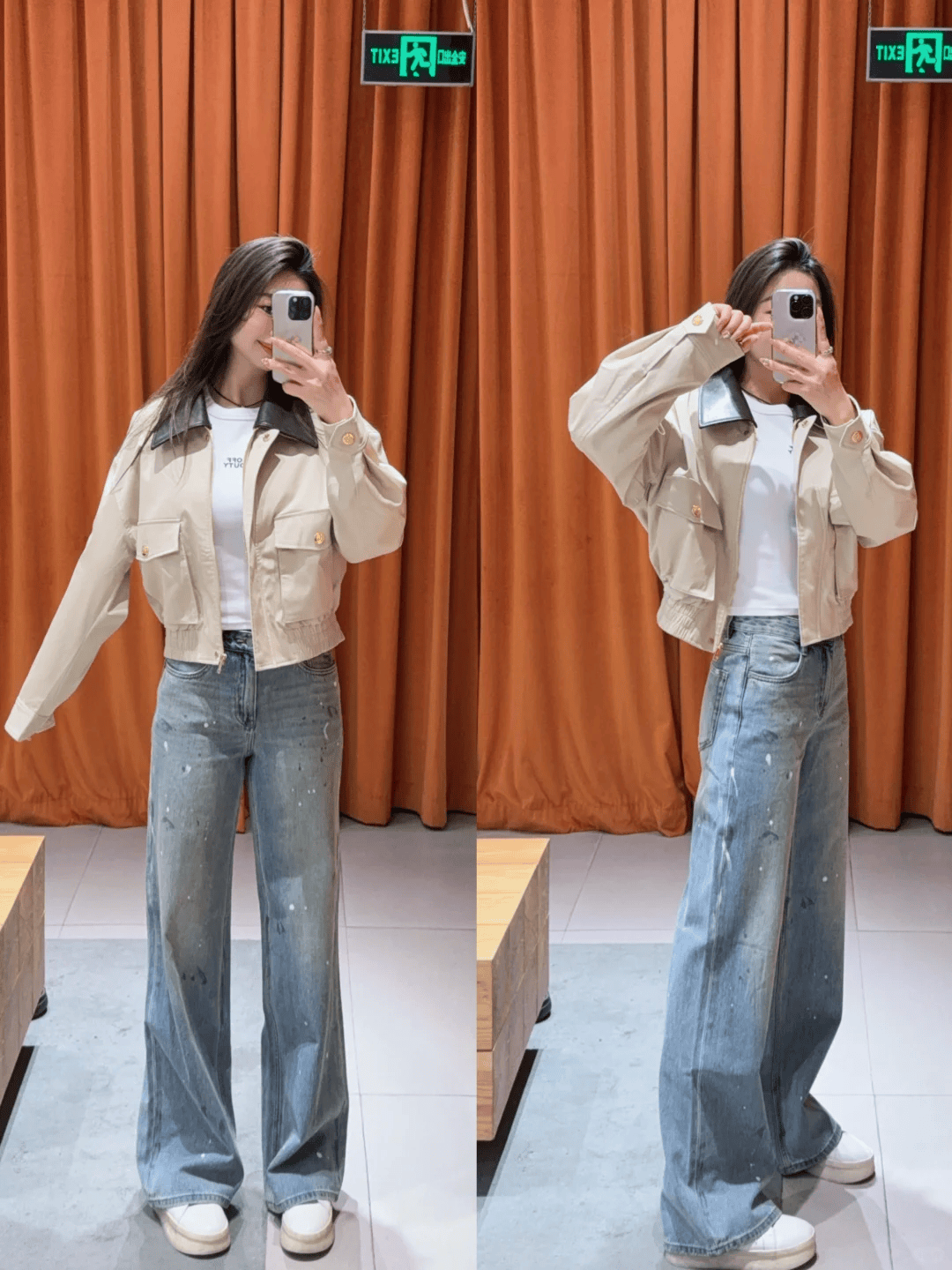 当周末到临,或是想要享受一段轻松的光阴,短款夹克取阔腿裤的组合便成为了你的不贰之选。夹克以其奇特的材质和休闲的设想,可以或许很好地营制出一种随性自由的空气,而阔腿裤则以其宽松的裤腿和舒服的穿戴体验,让你正在享受的同时,也能连结时髦感。