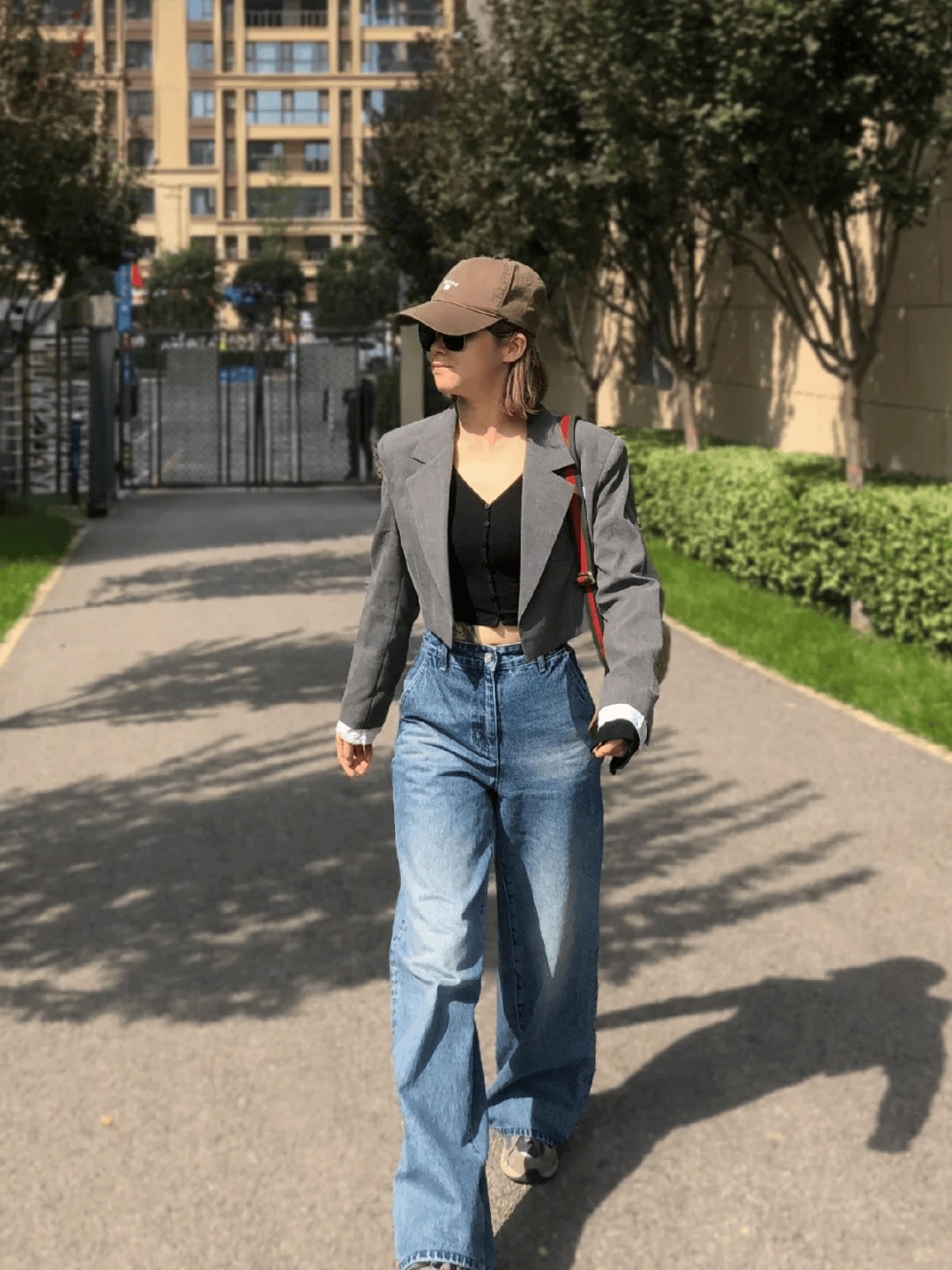 正在选择时,能够考虑典范色系如灰色/卡其色的小西拆,搭配牛仔阔腿裤,既连结了全体的协调同一,又不失个性取亮点。内搭方面,一件简约的黑色打底衫或是露脐拆,都能很好地均衡西拆的正式感取阔腿裤的休闲感,让你退职场中既能连结专业抽象,又不失小我气概。