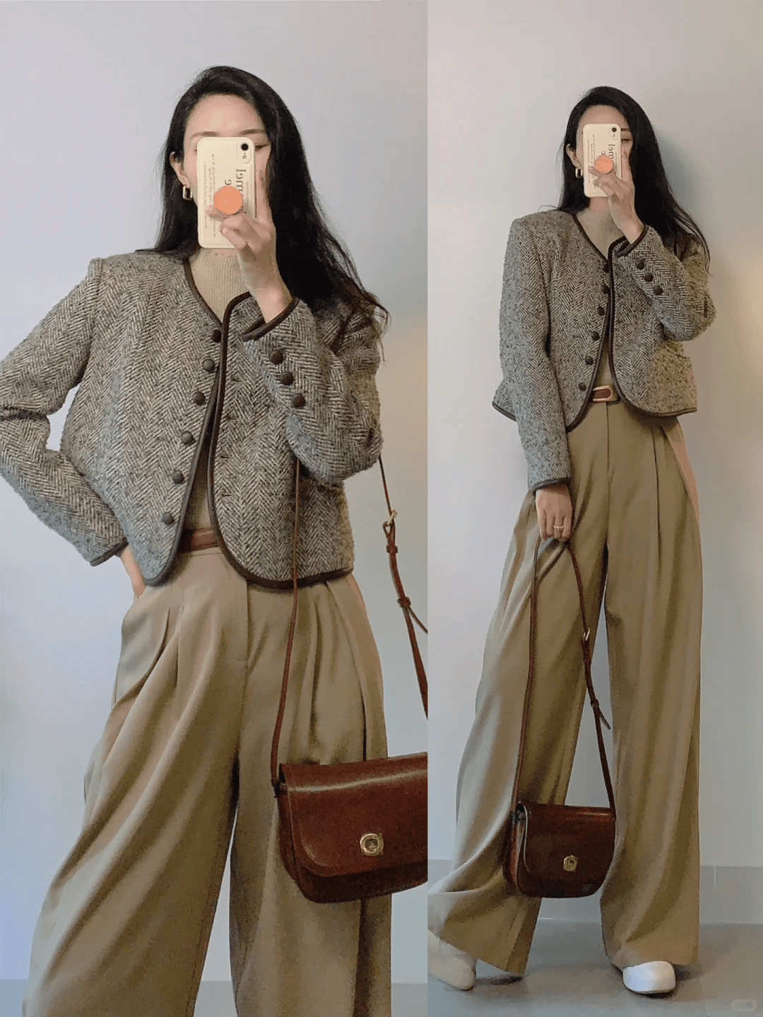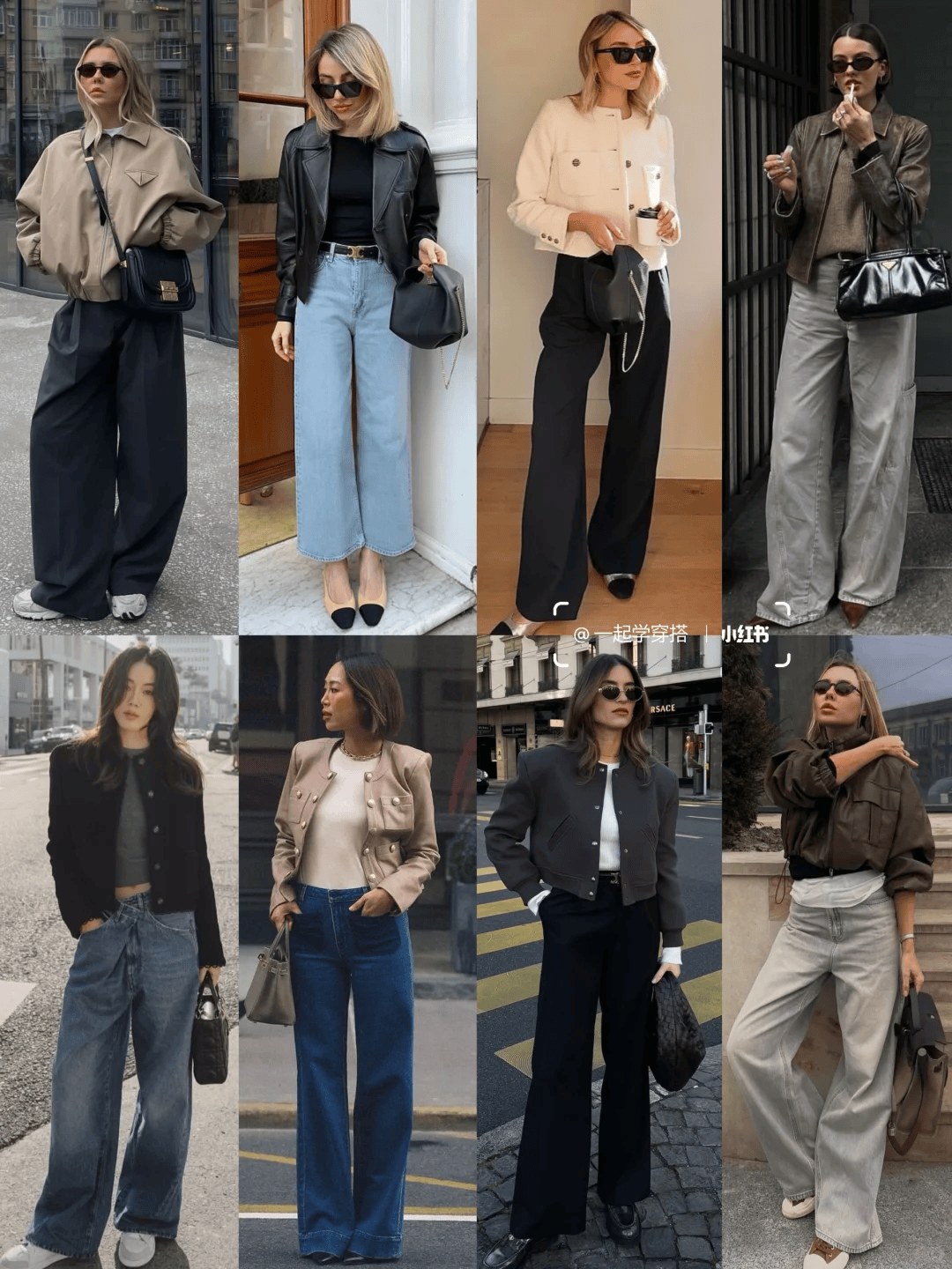 “短外衣 + 阔腿裤”本来这么美这才是长腿的准