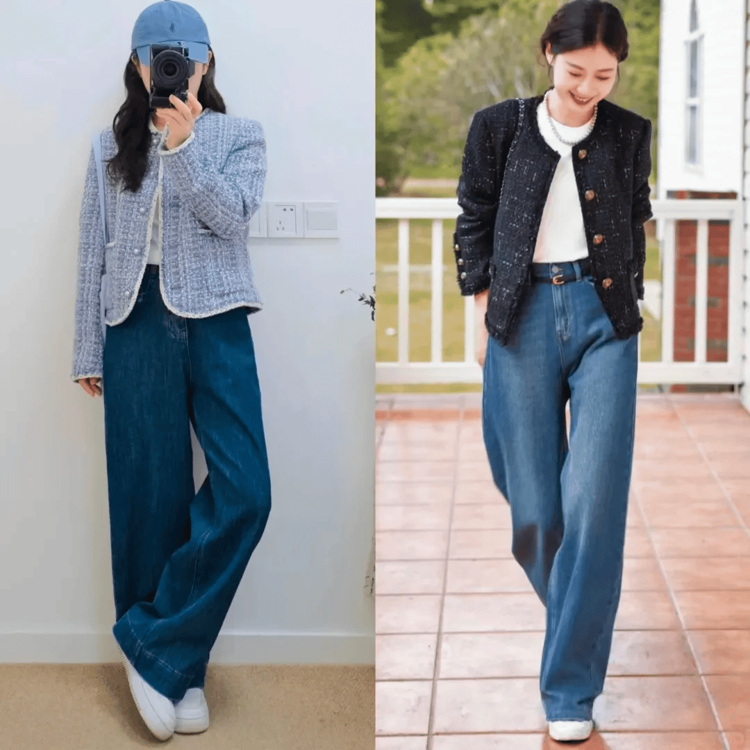 短款小西拆以其利落的剪裁和精悍的线条,可以或许很好地润色体态,而阔腿裤则以其流利的线条和宽松的裤腿,营制出一种随性而不失正式的空气。