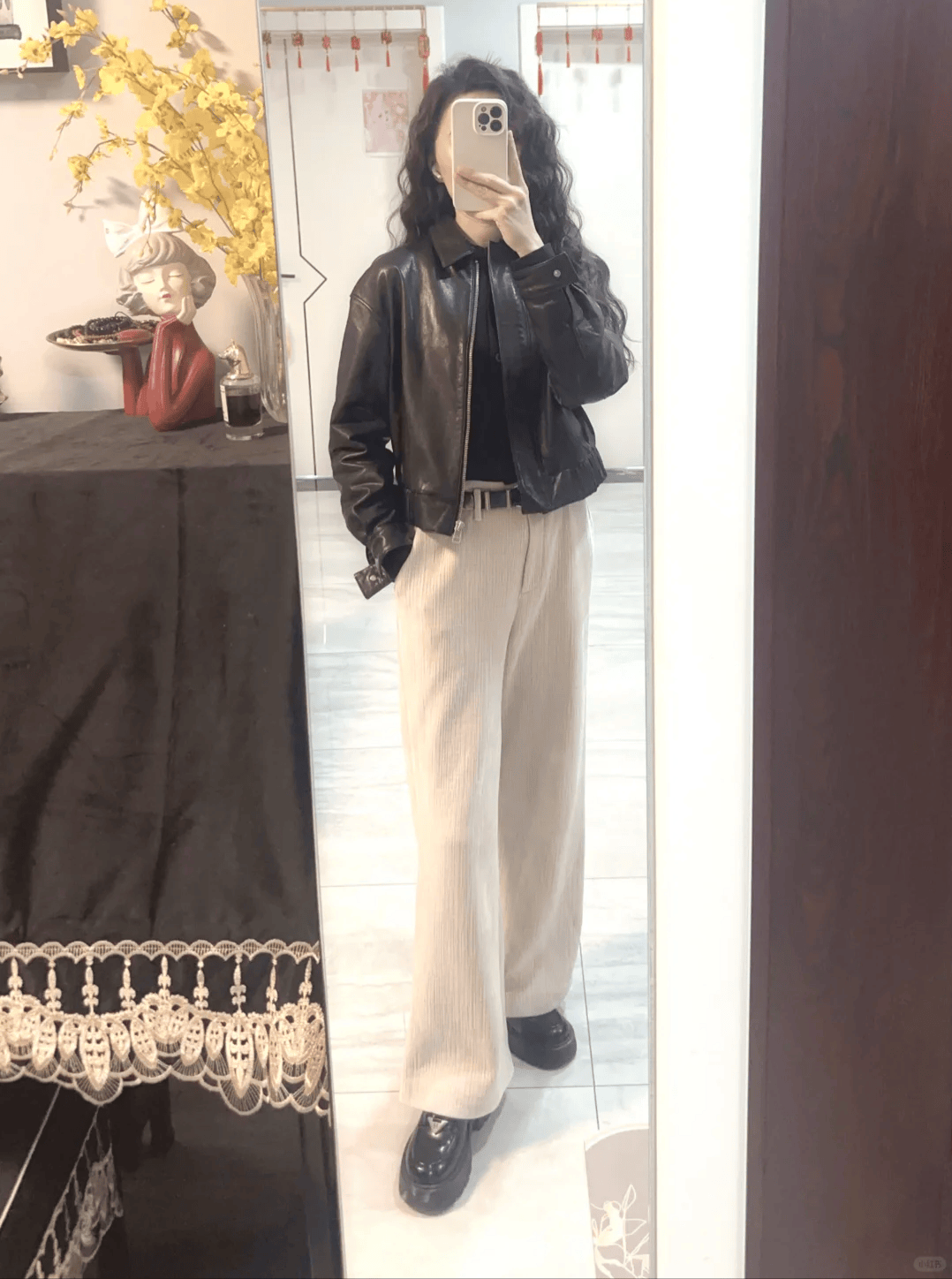 正在选择皮衣时,能够考虑黑色、棕色或是酒红色等典范色系,这些颜色不只百搭,还能很好地陪衬出皮衣的质感。能够选择一条高腰的牛仔阔腿裤或是丝绸材质的阔腿裤,前者能添加一份不羁取,后者则能展示出女性的优美取文雅。
